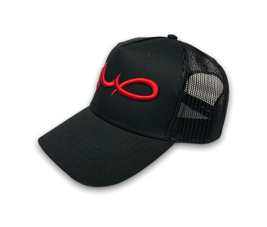 RED On Black Trucker 3D Embroidery Sabr Cap