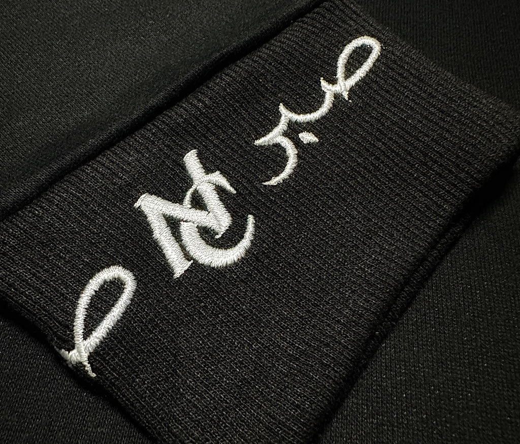 Both cuff Sleeves embroidered all the way around with our NC and Sabr logos